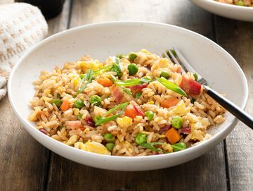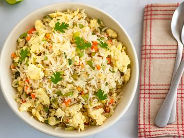 Basumathi rice, Spring Onion, Capsicum, Carrot, White Pepper, Soya Sorce, Egg